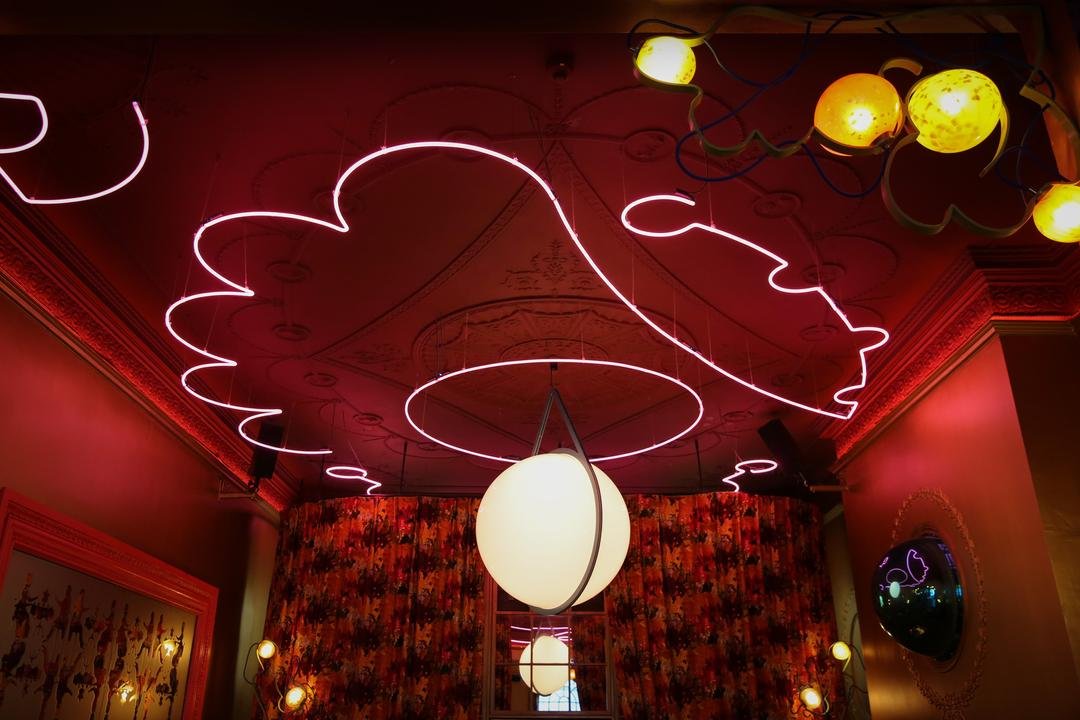 sketch’s very own patisserie, the Parlour offers breakfast, lunch, while also offering a to-go menu and click-and-collect service for drinks and light bites. In in the evenings it transforms into a creative hub, hosting everything from life drawing sessions to live music performances. Redesigned in 2018 by Mourad Mazouz and Andres Ros Soto, The Parlour combines eclectic style with a touch of luxury, its playful fabrics set against neon lighting that recalls the 1990s. A playful salon de thé by day, fused with an eccentric bar by night, with DJ’s & live music.